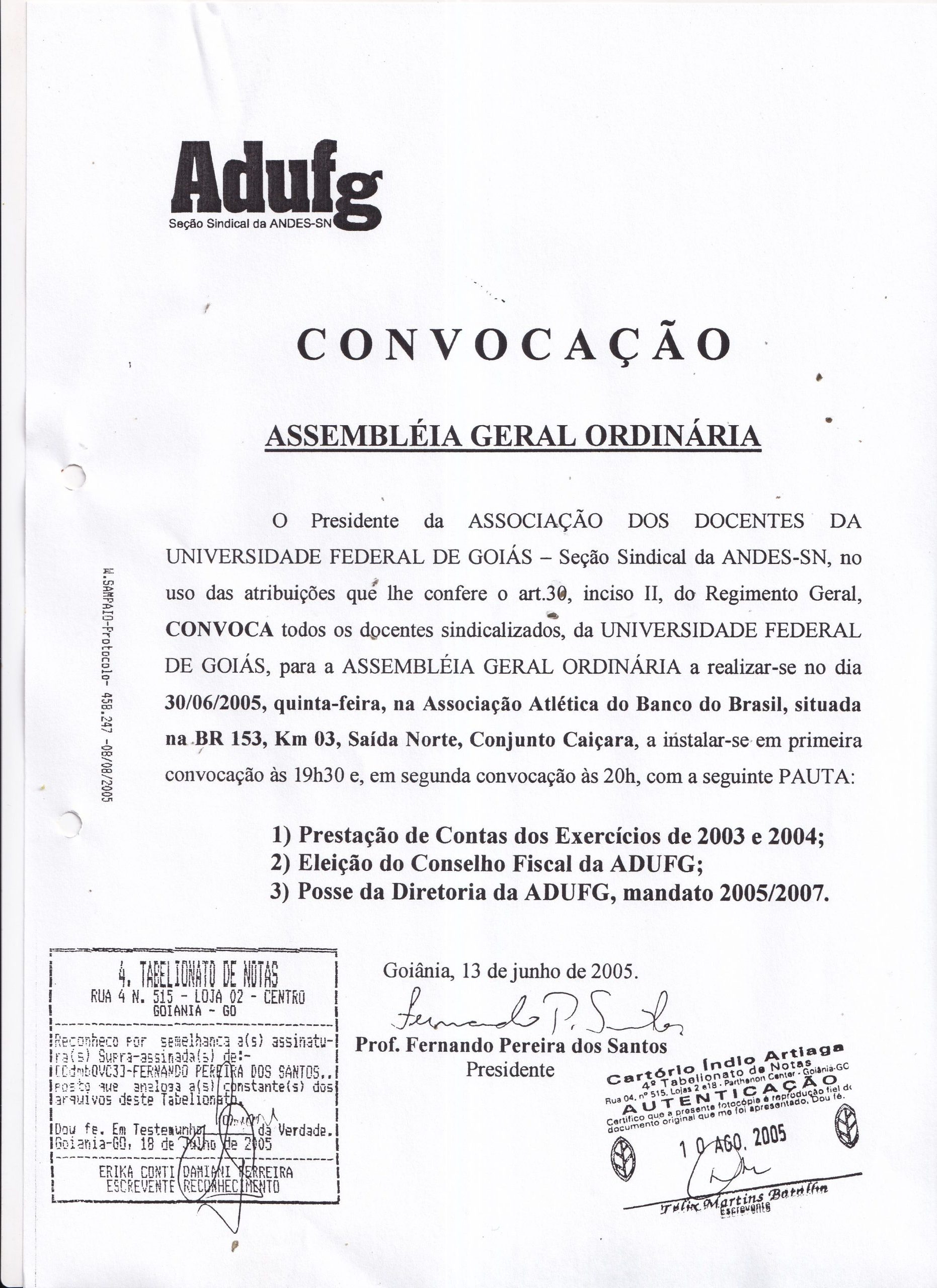 Convocação para assembleia geral ordinária Voltar 31 de janeiro de 2024 por Gustavo Alves Oliveira   Documento 006 BaixarMetadadosMiniatura Compartilhar Código de referênciaBR GO ADUFG CONVFundoADUFGSub-fundoComunicaçãoSérieEleiçãoTítuloConvocação para assembleia geral ordináriaEntidade produtoraAdufg-SindicatoSuporteDigitalData30 de junho de 2005 Continue navegando Recibo – Millennium corretora de seguros Ofício N° 04/2014 Voltar para a página de itens